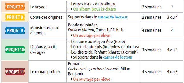 Les projets de MHF Lecture Compréhension ont été pensés et testés sur des niveaux précis, en regard des compétences des programmes. Toutefois, certains projets sont exploitables à d’autres niveaux de classe sous réserve des principes énoncés. Il va de soi aussi que de nombreux autres critères entrent en jeu: compétences propres de l’enseignant (plus facile d’adapter des outils quand on a de l’expérience que lorsqu’on débute !) , effectif de la classe, élèves en grande difficulté, élèves non lecteurs, budget pour investir dans les séries d’ouvrages, etc.
