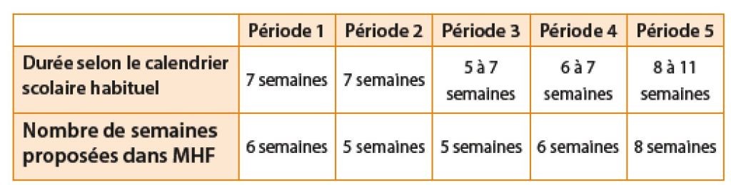 Une année scolaire s’étale sur 36 semaines. Certaines sont écourtées : semaine de rentrée, jours fériés, impondérables…La programmation s’appuie sur les programmes et sur les repères de progressivité. L’idée est de proposer un contenu sur 30 semaines pleines.