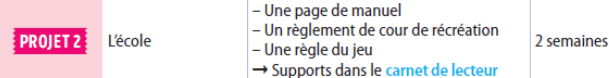 | Le guide comprend les séances détaillées, les fiches élèves à photocopier, l’accès aux ressources numériques. Pour des raisons de droits d’auteur (textes, images, documents), il n’est pas possible de fournir le guide en ligne, même pour un projet. | Le carnet de lecteur est l’outil élève indispensable. Pour chaque projet , une version numérique est proposée ci dessous (cela ne devait pas être le cas initialement). cf. explication ci dessous. |